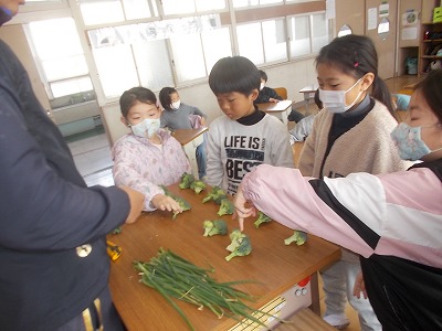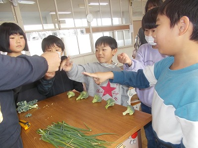 2年生は生活科で収穫した野菜を、みんなで分けっこしました。先生が切り分けたブロッコリーを、じゃんけんで勝った子から順にもらっていきます。とても気合いの入ったじゃんけんでした!おうちでおいしくお召し上がりください。