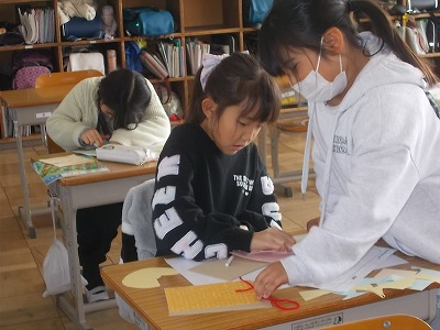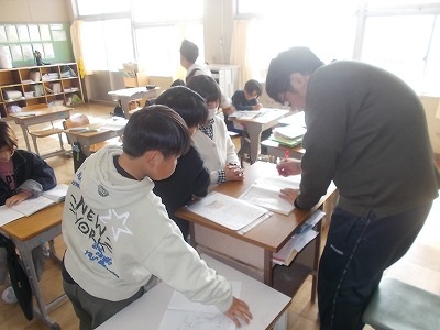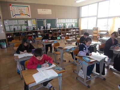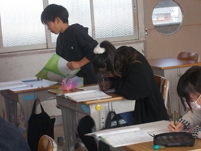 4年生の算数は、分数のまとめの問題を解いていました。たくさんの問題がありましたが、一生懸命解いて、先生に見てもらっていました。