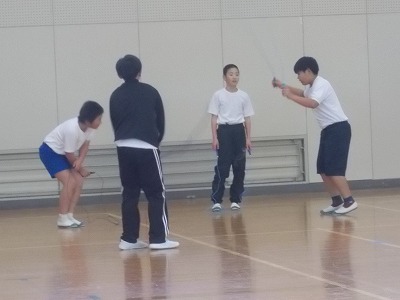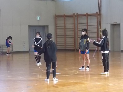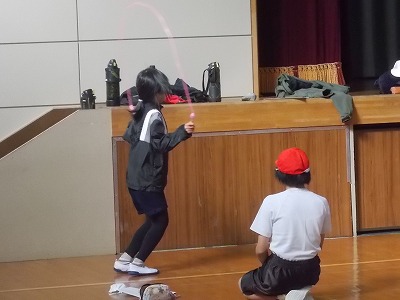 6年生は体育で短縄の練習中です。お互いに数え合いながら、新記録に挑戦しています。