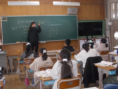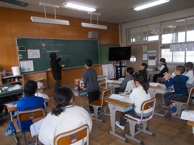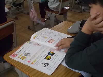 4年生は算数で、表を見て縦と横の本数の関係を式に表しました。みんなで言葉の式を考え、それを○や△といった記号を使った式に書き換えました。