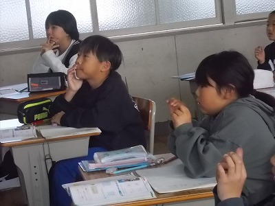 2年生は音楽で「ウンパッパ」という曲を学習しています。今日は「ティニックリング」というフィリピンの踊りの音楽を動画で見ました。その後、みんなでリズムに乗って、楽しく体を動かしました。