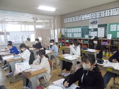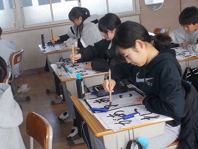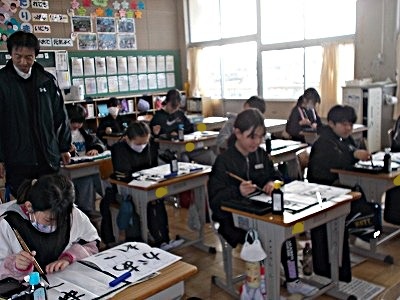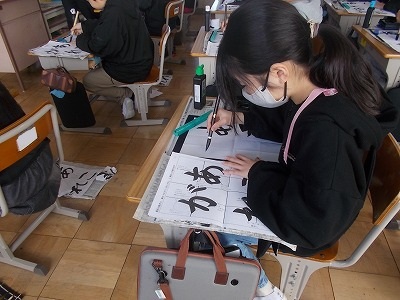 5年生は書写で、「あこがれ」という課題に挑戦しました。いつもは漢字ですが今回の課題はひらがな。筆遣いに四苦八苦していました。