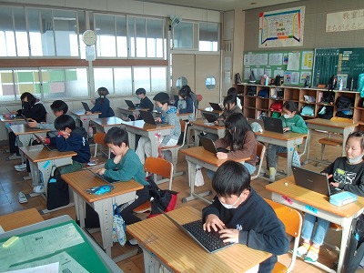 今日は、スライドのアプリを使い、学習しました。画像や背景の挿入の仕方や文字の色や大きさの変え方、画像の切り抜き方を情報教育アドバイザーに教わりました。その後、その技術を使い、オリジナルカードを作りました。子どもたちは、集中して作業に取り組んでいました。そして、切り抜き効果のやり方を聞き、画像にアニメーションを追加しました。いろいろな効果を試しながら、自分だけのスライドを作っていました。