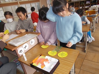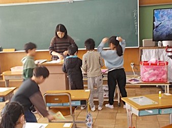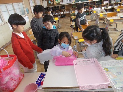 1年生はプレゼントづくりをしました。カード作りとお花作りを頑張っています。丁寧に心を込めて作ってくれています。