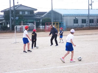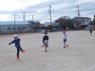 3年生の体育は、サッカーを行いました。二人組でパスでつないで、ゴールにシュート!失敗しても「どんまいどんまい!」という雰囲気で、とても楽しそうでした。