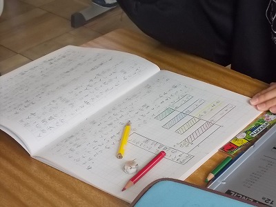 4年生は国語「調べてわかったことを話そう」の学習です。調べたことをノートにまとめていました。表やグラフをうまく使い、わかりやすくノートに記入していました。
