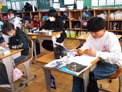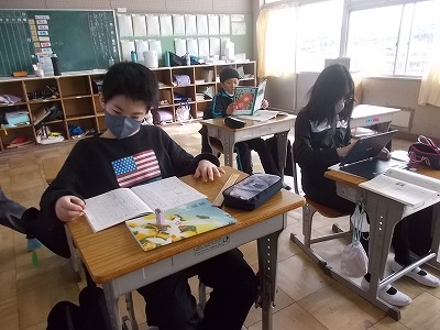 5年生は卒業式の「お祝いの言葉」の分担などをしていました。6年生が登校するのもあと1か月。送り出す側の最高学年として、精一杯頑張ってほしいと思います。