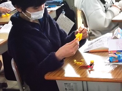 6年生は理科「電気の利用」の学習で、 「ECOライト」を組み立てています。説明書と先生の説明で、仕組みや作り方を理解しながら進めました。