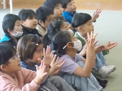 大放課に、お話会が開催されました。今日は「あめあがり」というお話でした。じっくりと聴き入っている子どもたちでした。最後には手遊びをして、楽しく終わりました。海の子文庫の皆さま、いつも楽しいお話会を開いてくださり、ありがとうございます!
