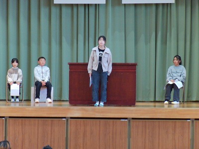 今日は児童会役員選挙でした。10名の児童が、野間小学校をどのような学校にしていきたいか。自分が当選したらどんなことをしたいかなどを演説しました。どの児童も野間小学校をよりよくしていきたいという気持ちが伝わってきました。気持ちが早いですが、令和8年度の野間小学校が、令和7年度を超えるよりよい学校になっていることを楽しみにしています。