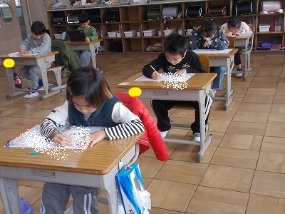 1年生は国語のテストを行いました。1年生の学習も、いよいよ終盤です。この1年間に学習した内容は、しっかり身についているかな?