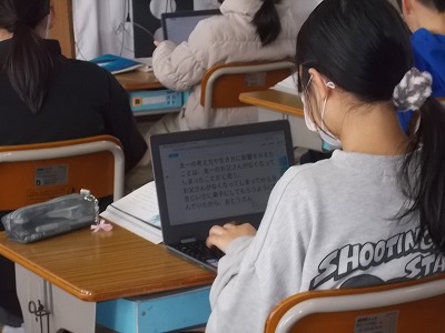 6年生は国語で「海の命」の学習をしています。主人公の太一の考え方や生き方に影響を与えたものは何かに着目して、感想を書きました。