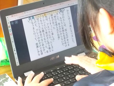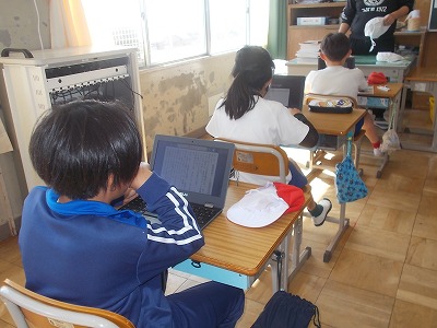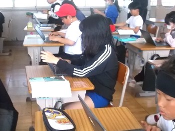 4年生は国語「スワンレイクのほとりで」の学習をしています。今日はそのお話の続きを各自で考えて、学習者端末で入力しました。みんなそれぞれにアイデアが浮かび、どんどん打ち込んでいました。