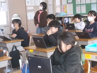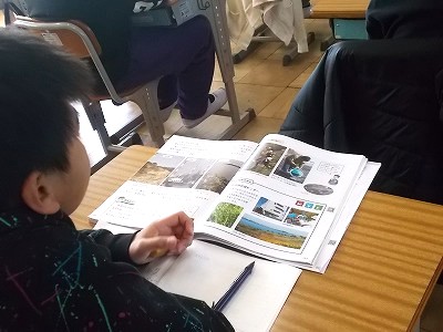 6年生は社会科「世界が抱える問題と日本の役割」の学習です。植樹、稚魚の放流など、自然との関わり方について、これまでの学習も思い出しながら考えました。