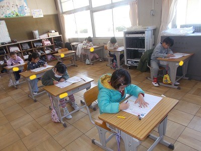 1年生は国語「いいこといっぱい 1年生」のテストでした。1時間目から集中して取り組めていますね。