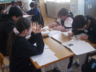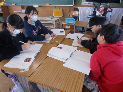 5年生は国語「大造じいさんとガン」の学習で、自分の課題についてまとめたものを発表し、意見交換をしました。友達の意見を聞き合うことで、自分の考えがより深まります。