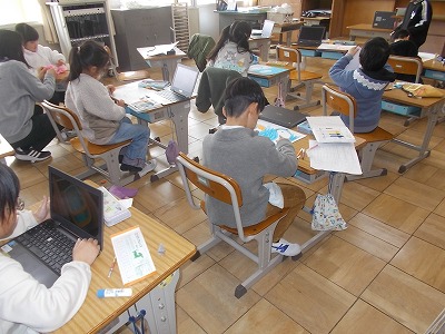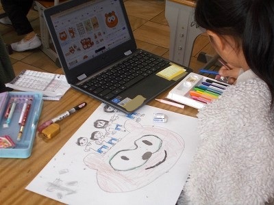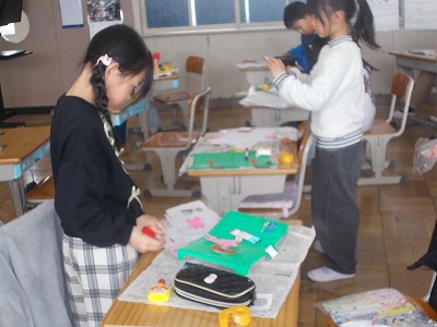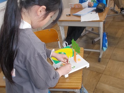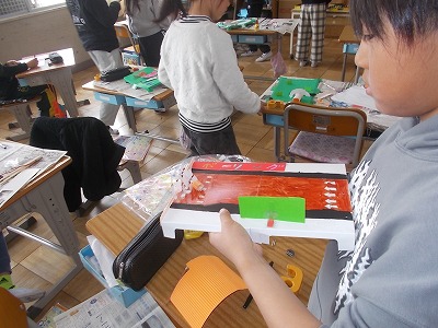 3年生は図工「マグネットマジック」の作品を作っています。磁石の力をうまく使って、ボーリングやレースなど、工夫された作品に仕上げています。