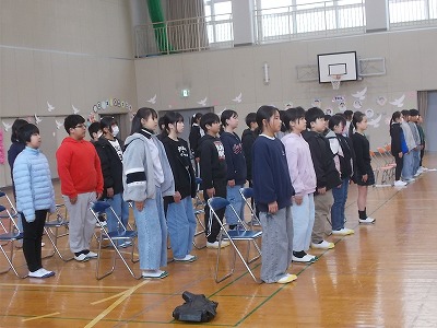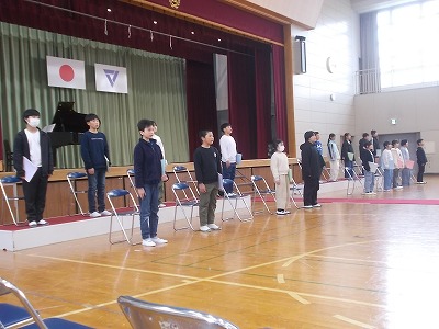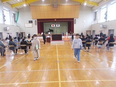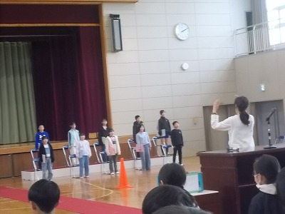 4~6年生は、卒業式の全体練習を行いました。卒業式に参加する4~6年生が集まっての練習は、今日の全体練習と来週の予行練習のみです。通し練習をしながら、動きやタイミングなどを一つ一つ確認しました。