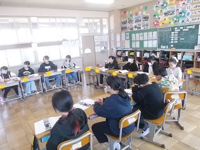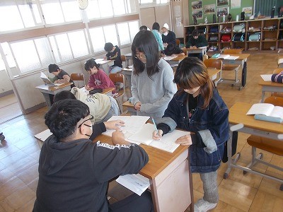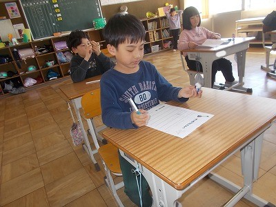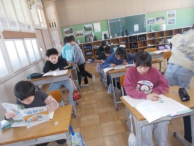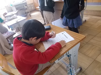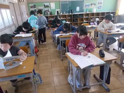 4年生は算数の復習問題を解いています。1年間のまとめを、着々と進めています。
