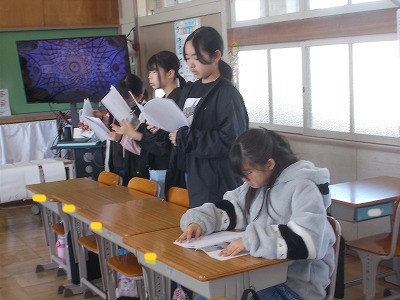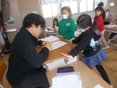2年生は先日の「馬頭琴」の出前授業の振り返りや、プリントの記入をしていました。実物のインパクトは、子どもたちにとって大きかったようです。