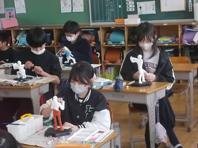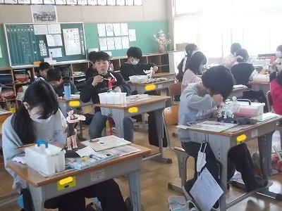 6年生は図工「未来のわたし」の制作です。リアルなポーズの作品も多くありました。絵の具で色塗りに入っている子も。完成が待ち遠しいです。