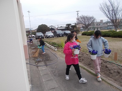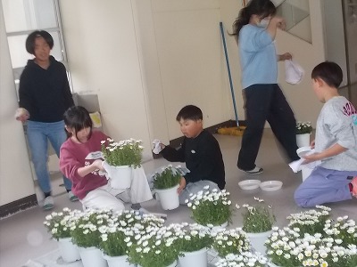今日は午後から、4・5年生が力を合わせて卒業式の準備を行いました。昇降口周辺、教室、来賓玄関、体育館周辺、式場など、とても丁寧に掃除をしてくれました。また、式場や昇降口などには、きれいな花を並べてくれました。さあ、準備はバッチリです。明日は気持ちよく、6年生を送り出しましょう!