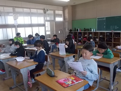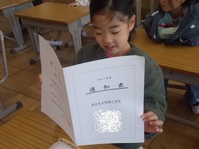 今日は修了式でした。式では代表の5年生に修了証が手渡されました。どの学年の子も、1年間本当によく頑張りましたね。大掃除で学校中をきれいにしたあと、学活では担任の先生から通知表をもらいました。各教室では1年をやりきったという子どもたちの笑顔がたくさん見られました。下校時には、交通指導員さんから登下校の安全についてのお話を聞き、最後に1年間のお礼の気持ちを伝えました。さあ、明日から春休みです。しっかりとエテルギーを蓄えて、4月に元気な笑顔が見られることを期待しています。