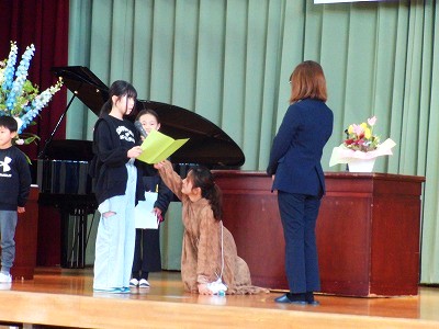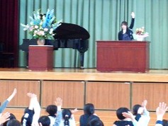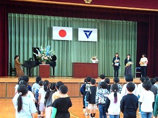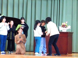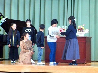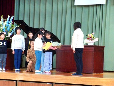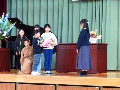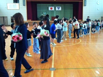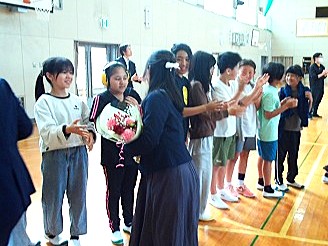 5時間目に、離任式を行いました。この4月から別の学校に異動された3名の先生方にお越しいただき、子どもたちに最後の挨拶をしていただきました。子どもたちにとっても、去られる先生方にとっても、久しぶりの再開を喜びつつも、同時にお別れのさみしさを感じる場となりました。それぞれの先生からお話をいただいた後、子どもたちからお手紙と花束の贈呈を行いました。去られる先生方、新天地でのご活躍をお祈りしています。今後も野間っ子たちの成長を見守っていてください!
