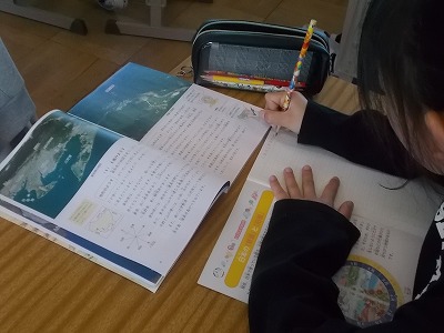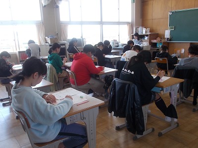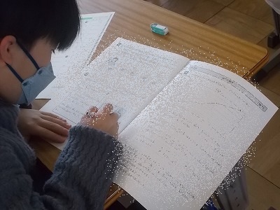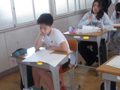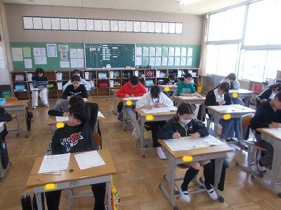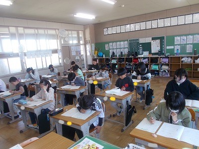 6年生は算数の学力テストのほか、外国語の学力テストも行いました。ちょうど、音声を聴き取って答える問題を解いていました。
