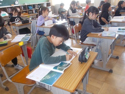4年生は社会科「私たちの愛知県」の学習が始まりました。今日は地形の様子についてです。愛知県が移った航空写真を見て、見つけたことや不思議に思ったことはどんなことかな?