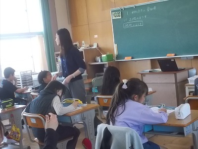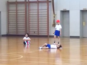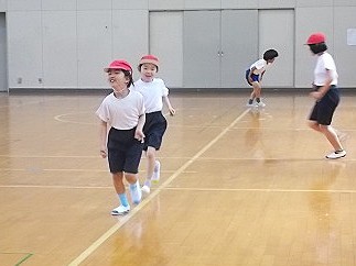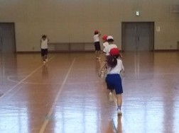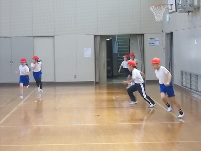 3年生は体育館で体育「体つくり運動」の学習です。みんなでしっかりと準備体操をしてから、「ライン鬼ごっこ」をしました。逃げたり追いかけたりできるのは、体育館の白い線の上だけ。すごい勢いで走り回りました。終わったらヘトヘトです・・・。