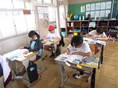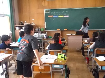 4年生の算数です。今日のめあては「位に目をつけて10倍した数や10でわった数をみつけよう」でした。みんなで一緒に考えていく中で、決まり事を見つけ出したようです。