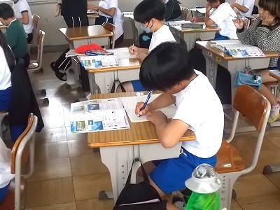 6年生は図工で「私の大好きな風景」に入りました。これからの学習の流れを聞いたあと、学校の中で自分が好きな風景を写真に撮ってきます。野間小の中のどの風景を描いてくれるか、とても楽しみです。