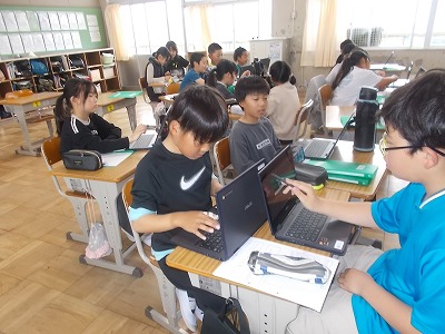 4年生は総合的な学習では、、福祉について学習していきます。今日は福祉とはどんなものなのか、学習者端末を使って調べていました。