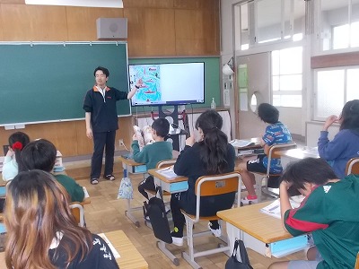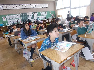 5年生は図工「あの時あの場所 わたしの思い」の学習です。今までの生活の中で、心に残った情景を思い出して絵に表します。スケッチの前に、遠近法などの技を教わりました。