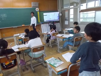 2年生は算数の授業です。とても集中しています!放課と授業で気持ちをしっかり切り替えられると、ピリッとした雰囲気になって集中できますね。ぜひ1年間もち続けてほしいと思います。