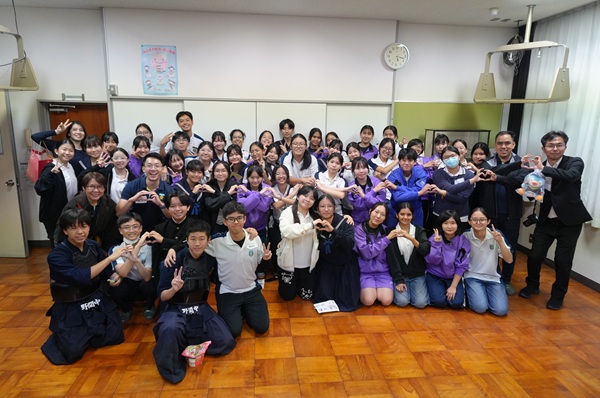 本日、シンガポールのニーアン中学校の生徒が来校しました。受け入れ式では、あいさつの後、全校生徒でシンガポールの歌「Home」を英語で一緒に歌い、温かい雰囲気の中で歓迎しました。その後、3年生を中心にバディを組み、授業や部活動などさまざまな活動を一緒に体験しました。授業では、竹とんぼや万華鏡づくり、また、掃除の時間には掃除の体験を行い、互いに協力しながら楽しそうに取り組む姿が見られました。部活動体験では、ニーアン中の生徒の希望により「剣道」を実施。本校の剣道部員が一生懸命に教える姿が印象的でした。ニーアン中の生徒にとってよい思い出になったと信じています。また、本校の生徒にとっても、異文化にふれ学び合う貴重な経験となりました。