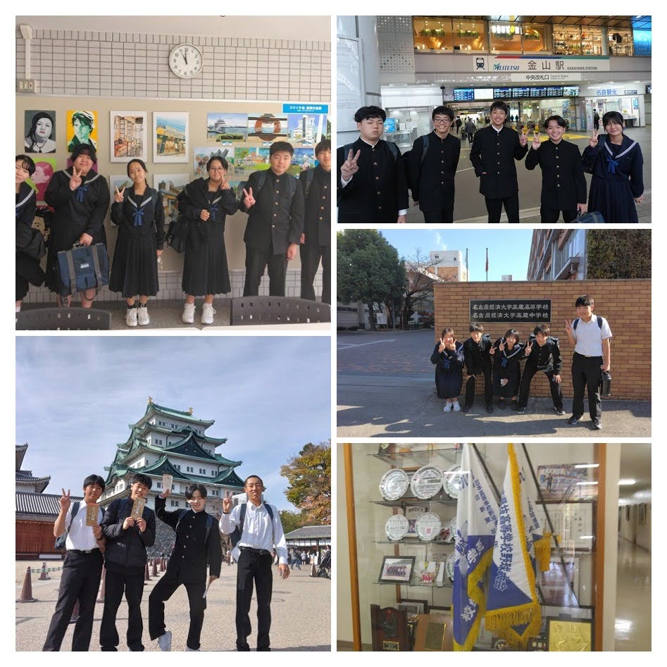 2年生が、名古屋分散研修で上級学校訪問を行いました。班ごとに名古屋に向かい、それぞれ高校を見学しました。班で計画に沿って行動し、協力しながら研修を進めることができました。実際に高校を訪れることで、進路について考える良いきっかけになったと思います。