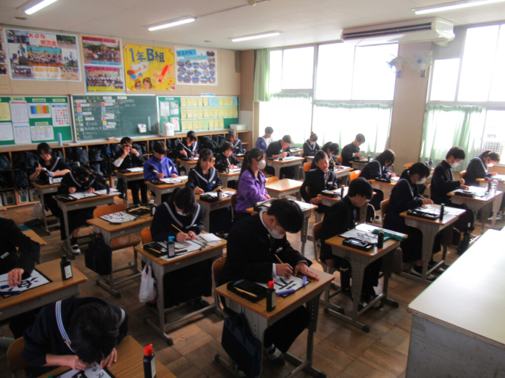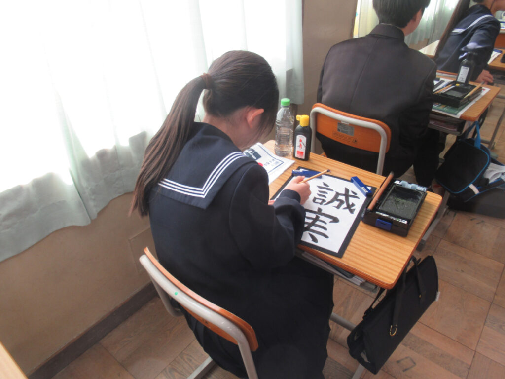 5時間目に1年生が書き初めをしました。今年の目標や抱負などを考え、思い思いの言葉を毛筆で力強く書き上げました。「元気」「挑戦」「努力」「笑顔」など、明るく前向きな言葉が並びました。