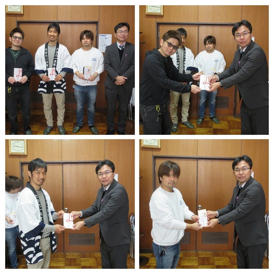 本日、野間・奥田・上野間の三地区の厄歳の代表の方々より、生徒たちのためにとご寄付をいただきました。