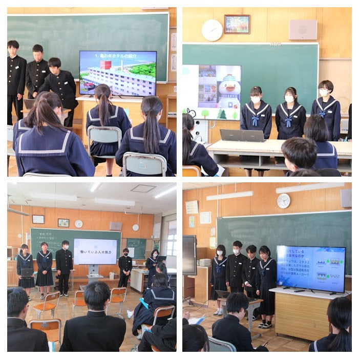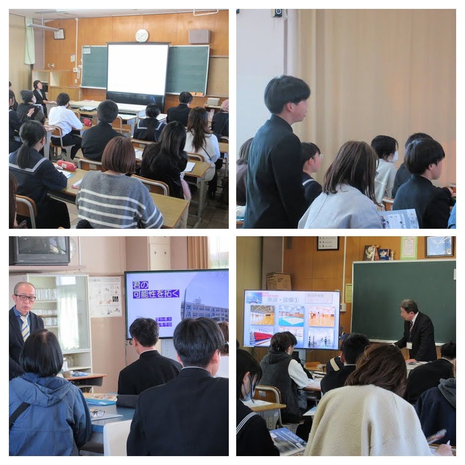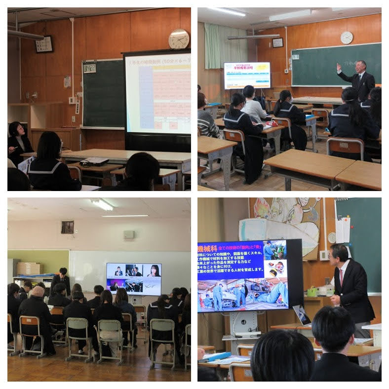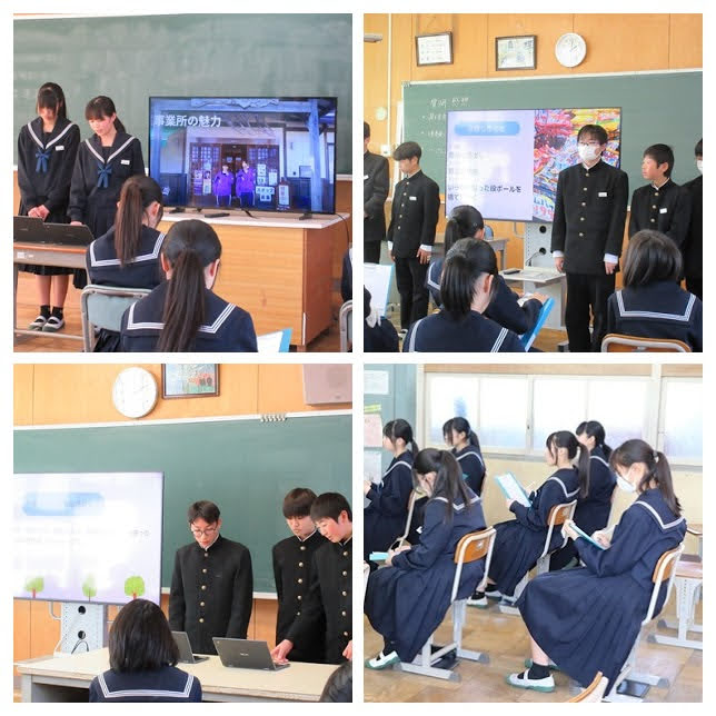 本日、学校公開を行いました。1年生は、職場体験の報告会を行い、それぞれが体験して学んだことや感じたことを発表しました。2年生は、進路説明会を行い、阿久比高等学校、桜花学園高等学校、名古屋大谷高等学校、名古屋工業高等学校、愛知芸術高等専修学校、半田農業高等学校の先生方にご来校いただき、それぞれの学校について説明をしていただきました。生徒たちにとって、これからの進路や将来について考える貴重な時間となりました。また、たくさんの保護者の方にご来校いただき、ありがとうございました。