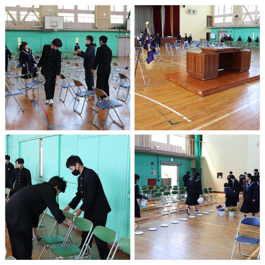 本日、新任式、担任発表、クラス発表を行いました。生徒たちは、新しく来られた先生方の話を真剣に聞いていました。その後、新しい担任やクラスの発表があり、新たなスタートへの期待が感じられました。また、明日の入学式に向けた準備も意欲的に行い、新入生を迎える準備はバッチリです。やる気にあふれた、良いスタートとなりました。新入生の皆さん、明日の入学を楽しみに待っています。