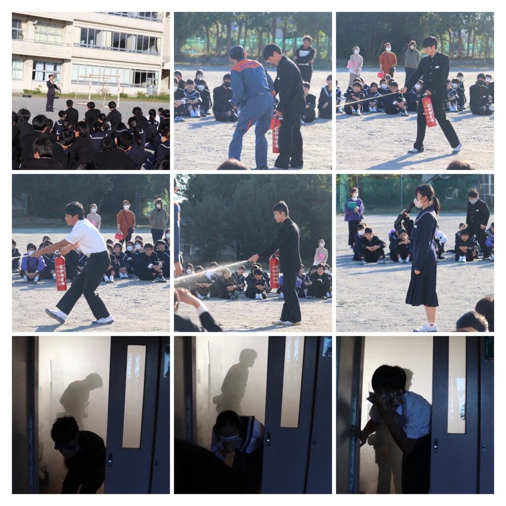 火災を想定した避難訓練を実施しました。いざという時に冷静に行動し、自分の命を守るための訓練です。生徒たちは落ち着いて避難することができ、その様子を見た消防署の方からも「とても落ち着いて行動できていました」とお褒めの言葉をいただきました。また、消火器の使い方や煙体験も行い、防災意識を高めました。生徒下校後には、職員を対象に機器の操作方法や対応手順の講習も実施し、万が一に備えました。