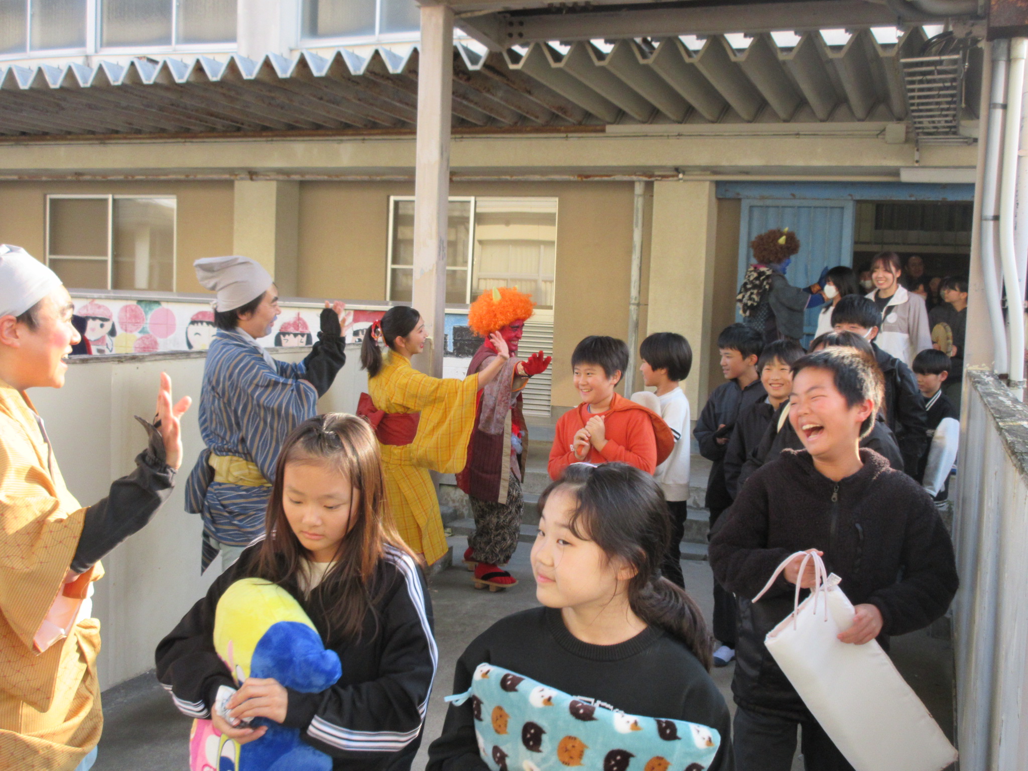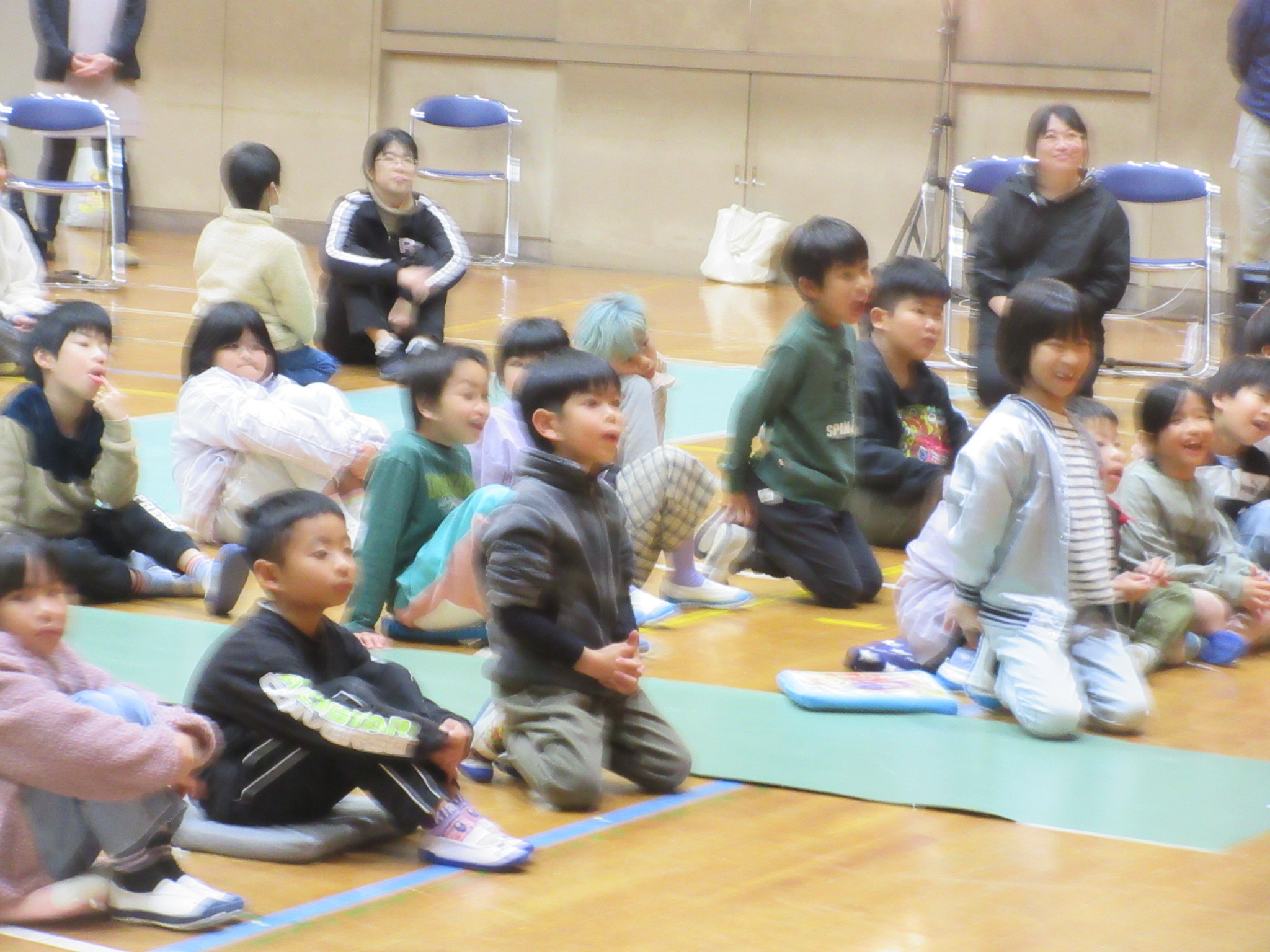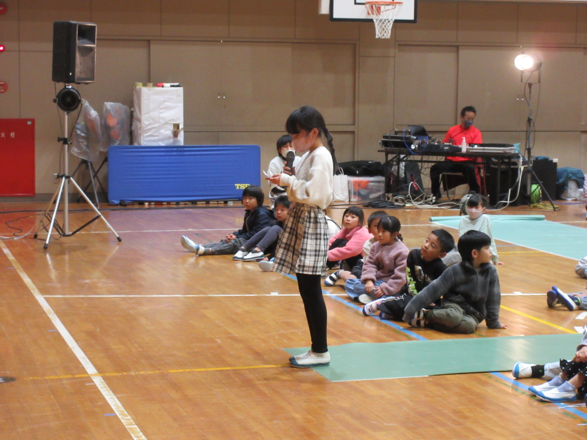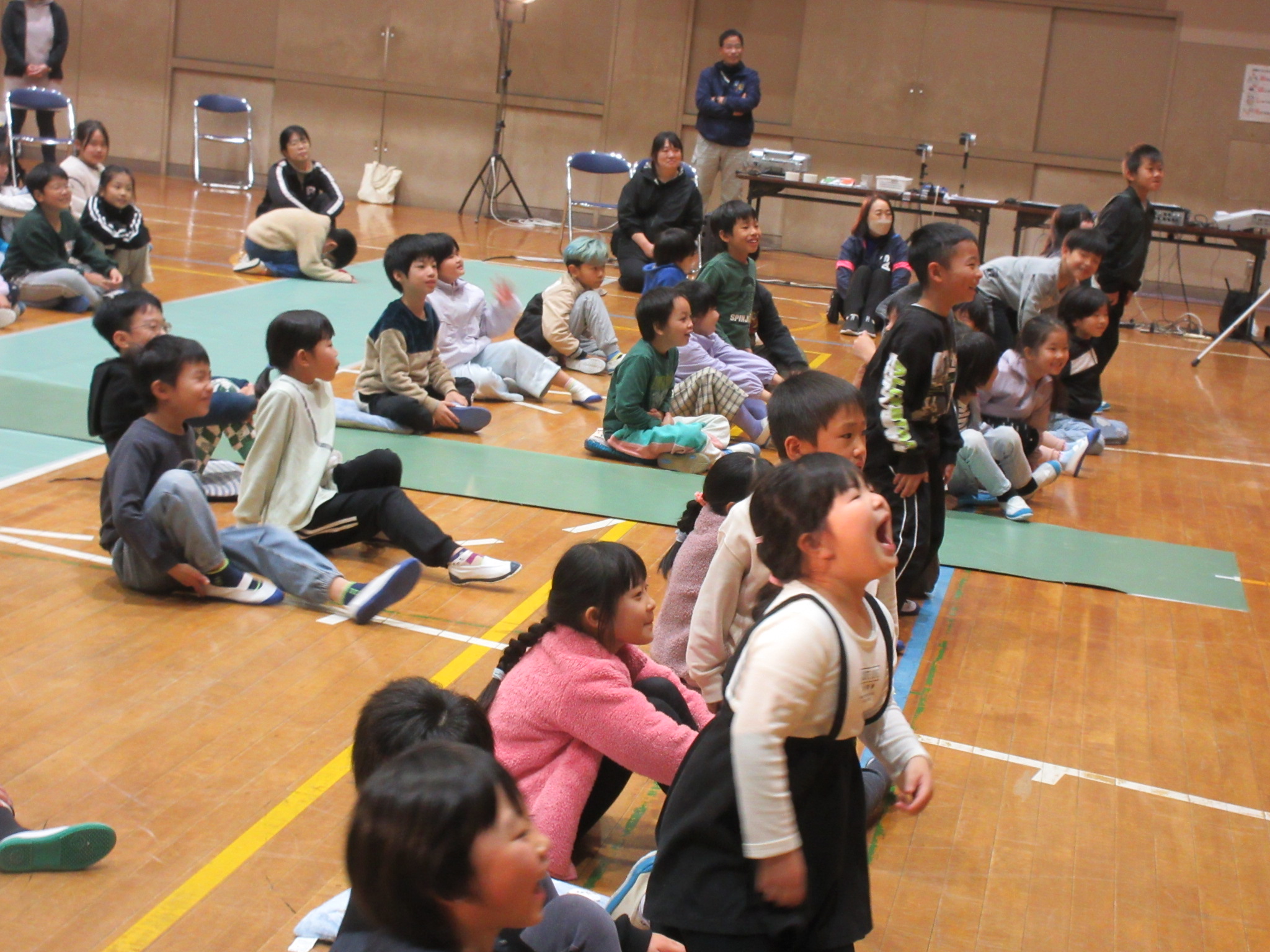 午後に文化庁公演 「ないたあかおに」の演劇を鑑賞します。そのワークショップとして2時間目に、ダンスをしたりステージに配置される大道具に絵をかいたりしました。子どもたちはみんな笑顔で楽しく参加しました。午後からの演劇がより楽しみになったようです。