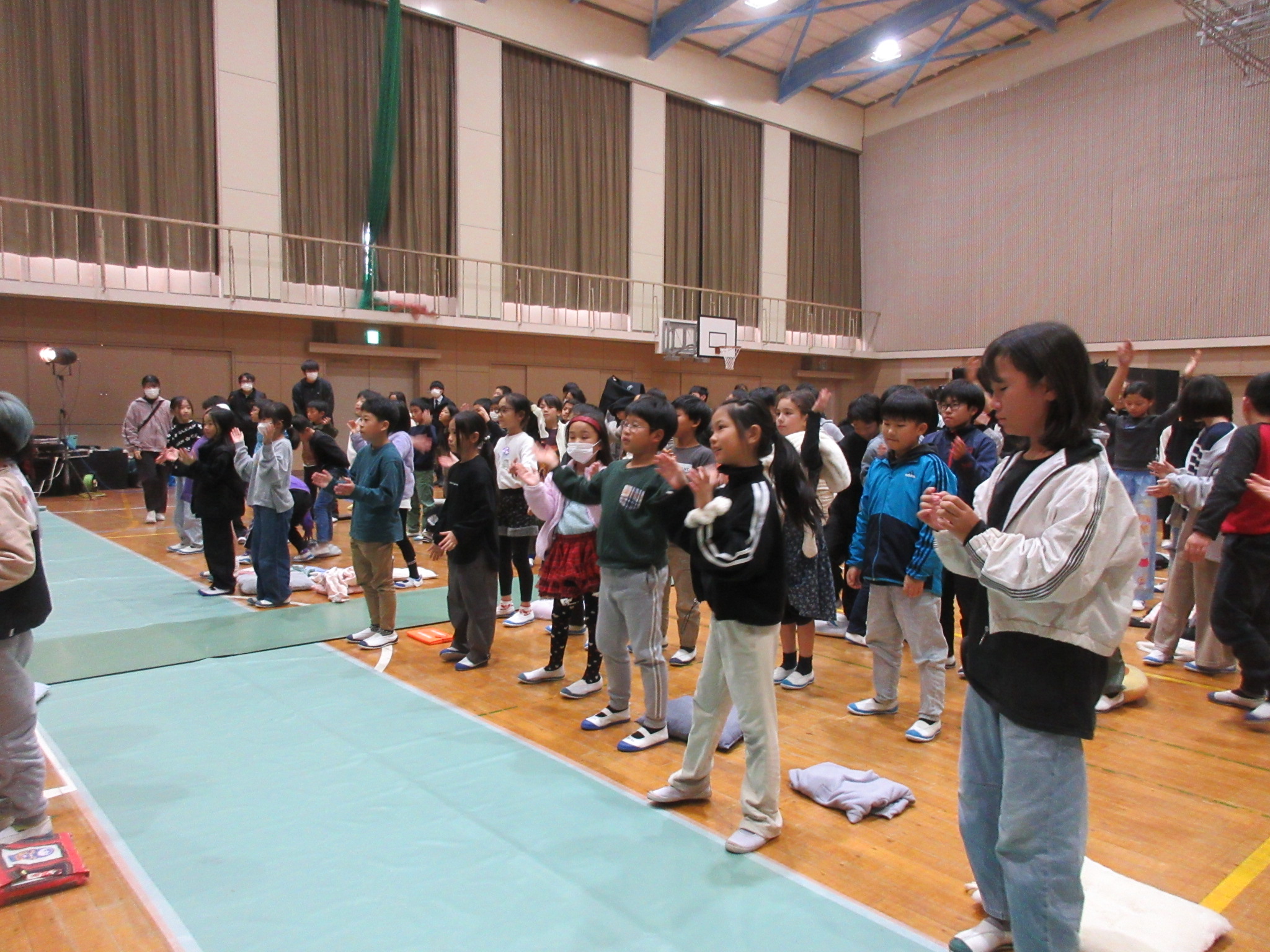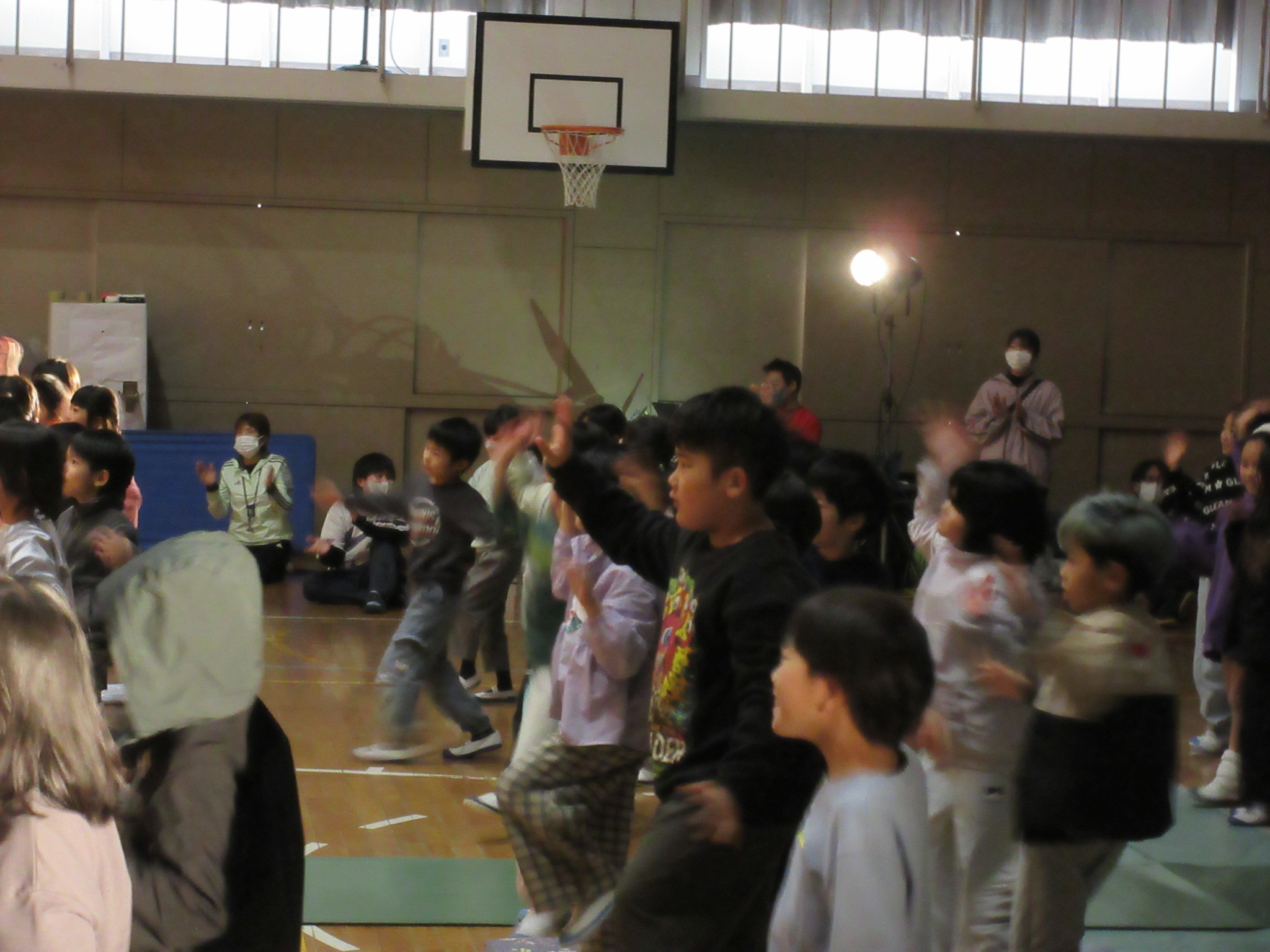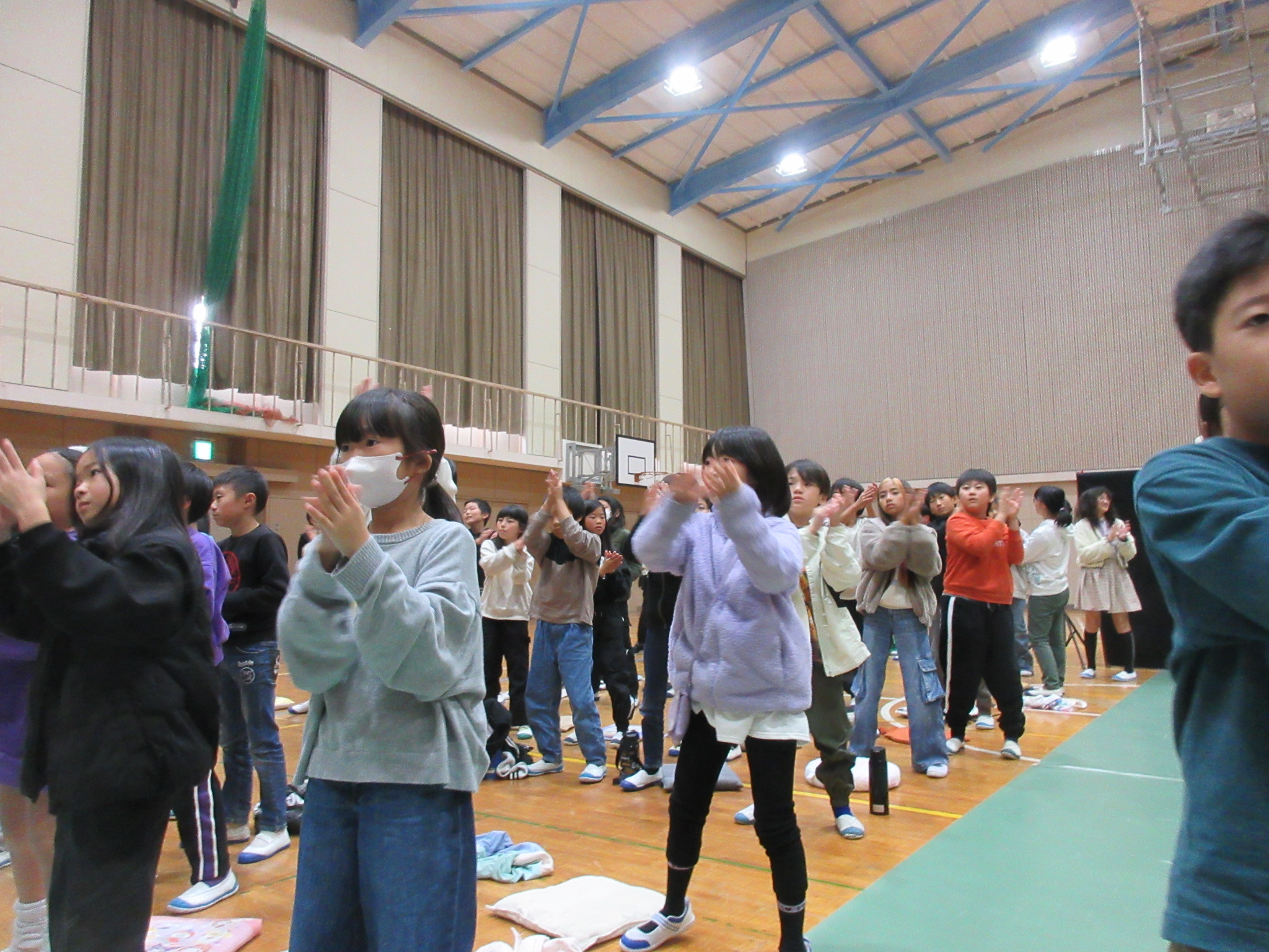 今日の授業の様子です。学習発表会の練習をしている2年生。音楽を聞きながらダンスをする4年生、5・6年生は外で体育をしています。今週も元気に勉強や運動・遊びにがんばろう。