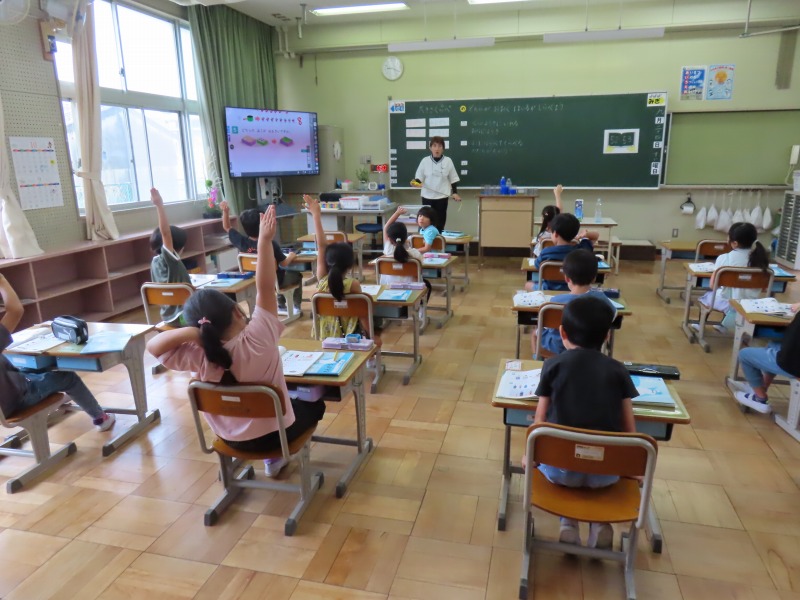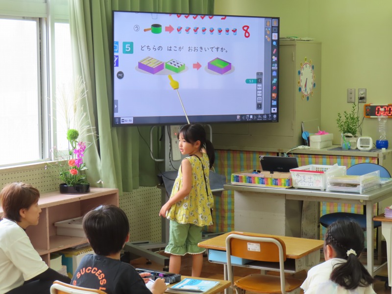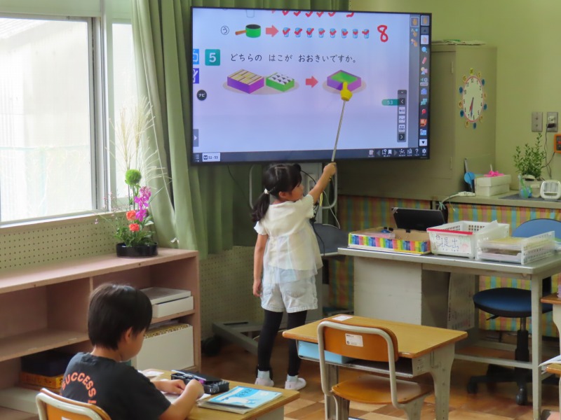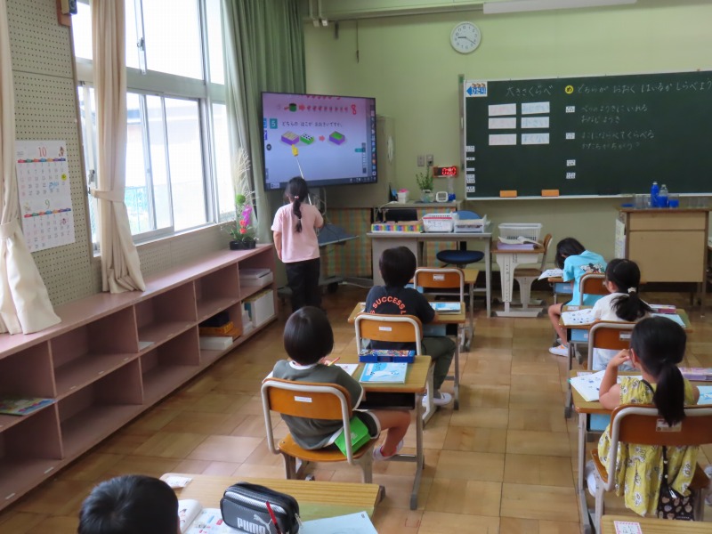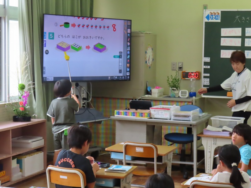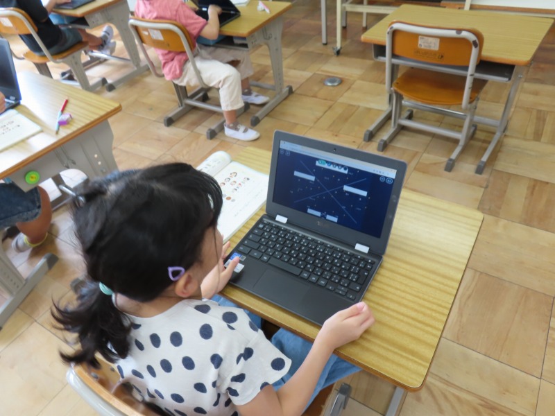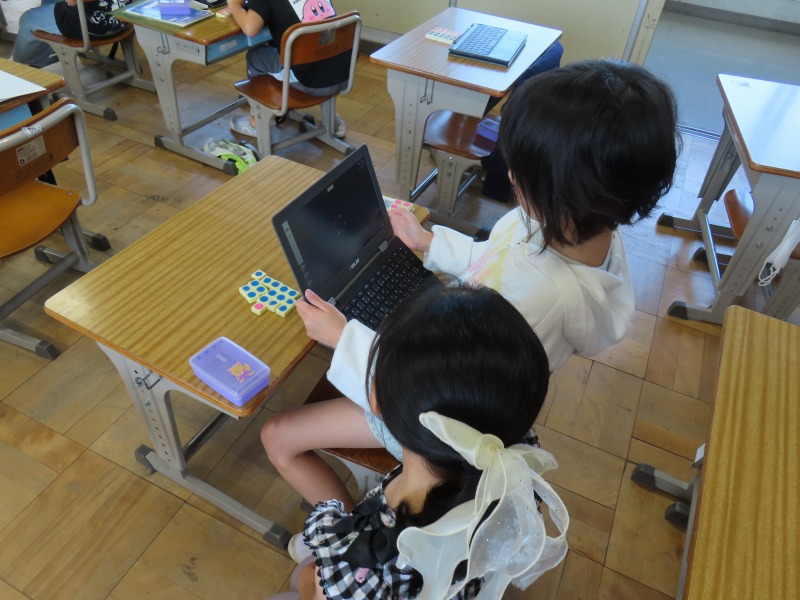 3年生では算数の研究授業が行われました。割り算の仕方をブロックを使って考えます。みな積極的にタブレットを使って説明用の動画を作りました。