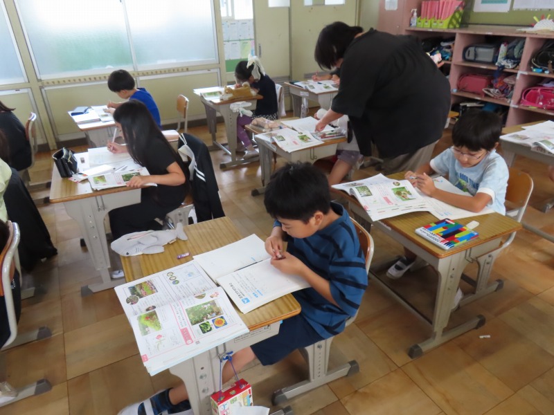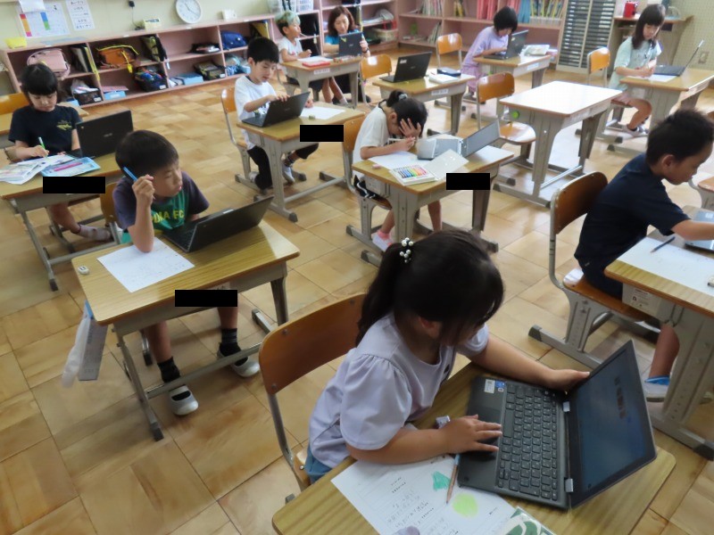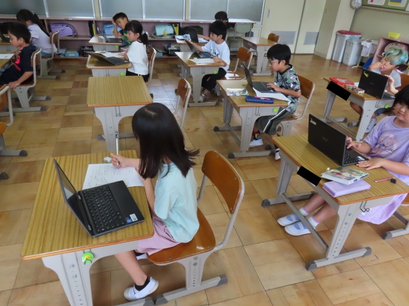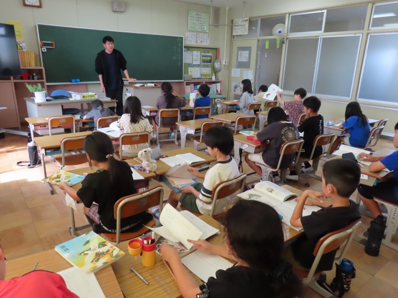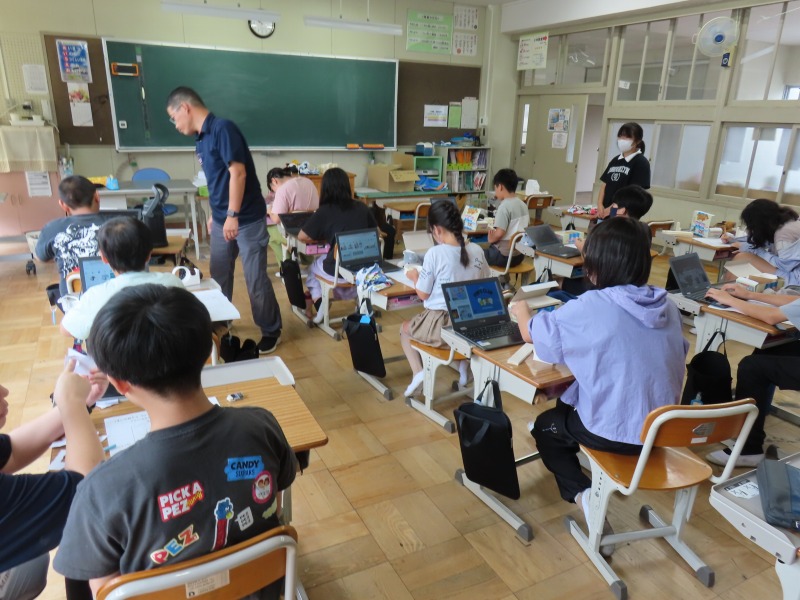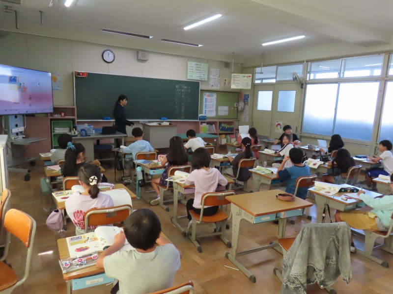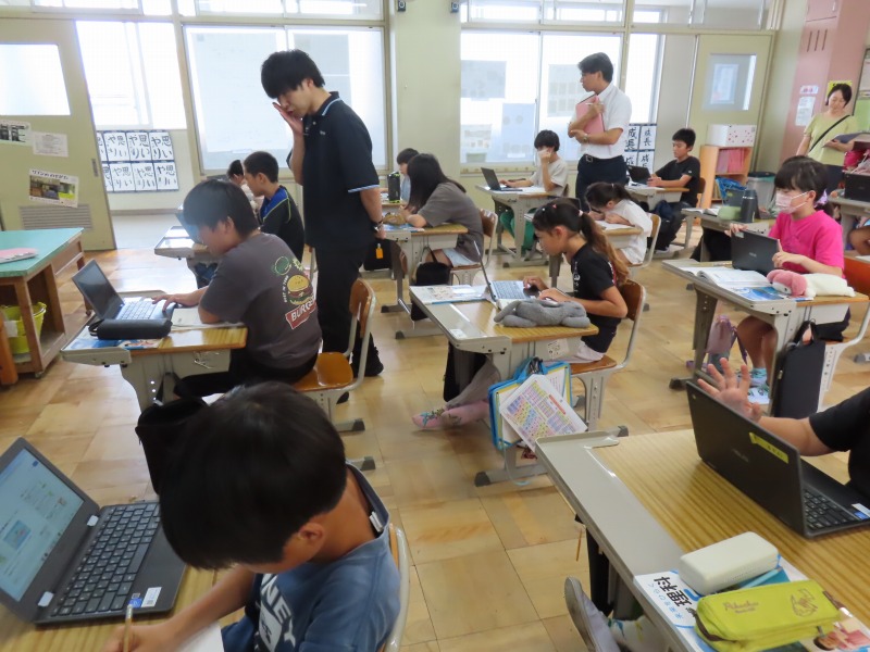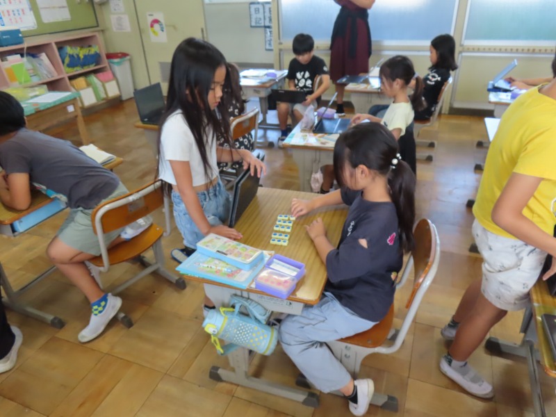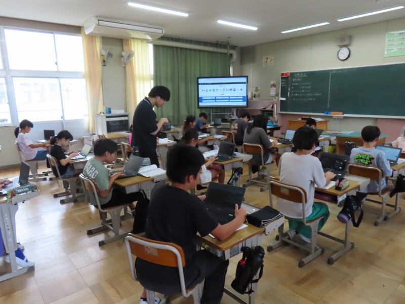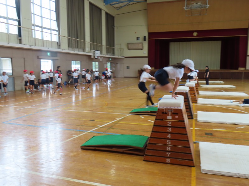 今日の授業の様子です。体育では運動会のソーラン節の練習や跳び箱、タブレットを使っての調べ学習など、今日もしっかり学んでいます。大放課は、雨の影響で外で遊べなかったため、図書室が大混雑でした。図書委員会の5年生が手際よく処理してくれたので、スムーズに貸し出しや返却の処理ができました。3限からは天気も回復傾向で青空が広がっていきました。