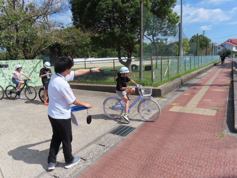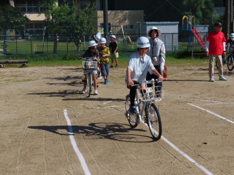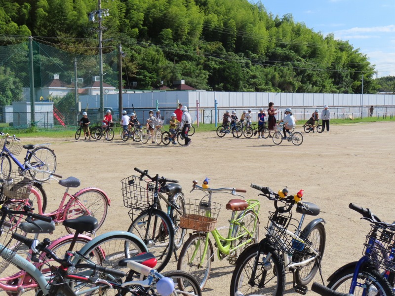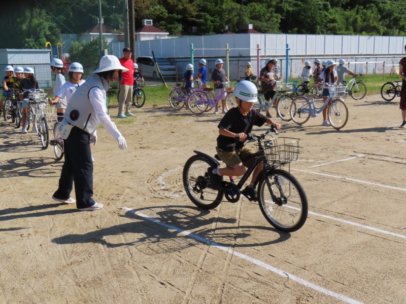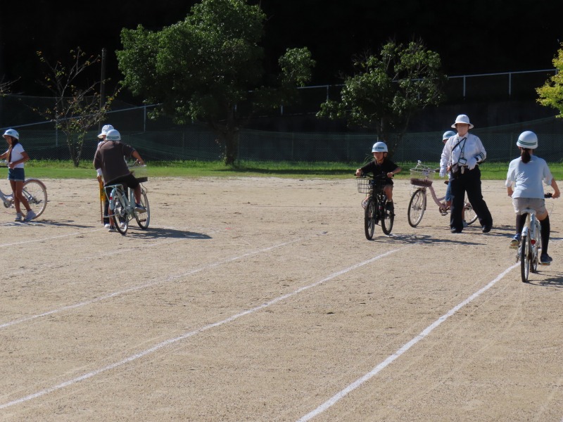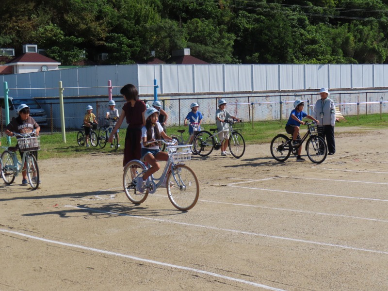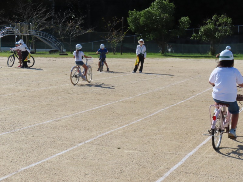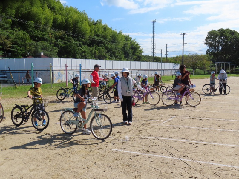 今日は午前中に自転車訓練がありました。交通指導員の方々にきていただき丁寧に自転車の乗り方を教えてもらいました。