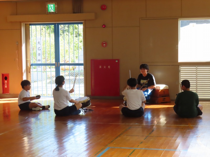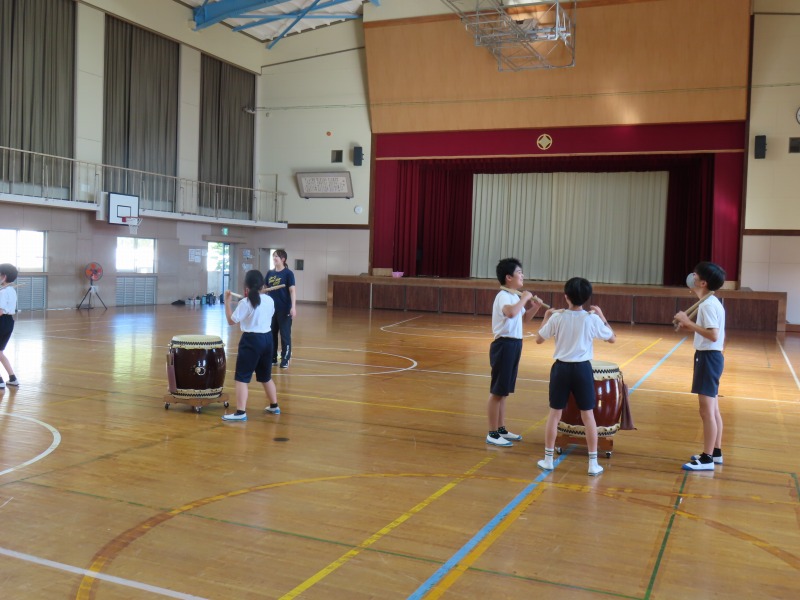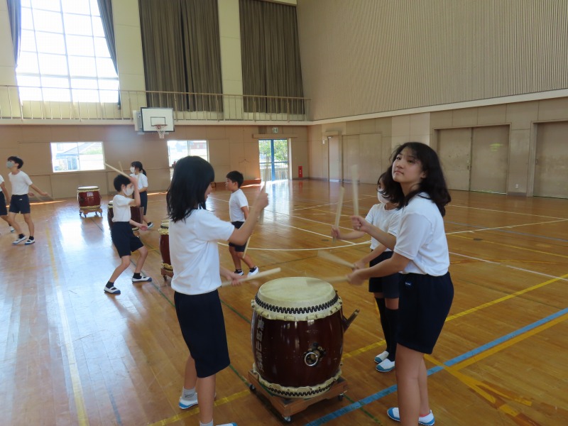 6年生は和太鼓の練習の様子です。4年生は理科で運動場にでかけ空気鉄砲をしました。皆楽しく実験できました。