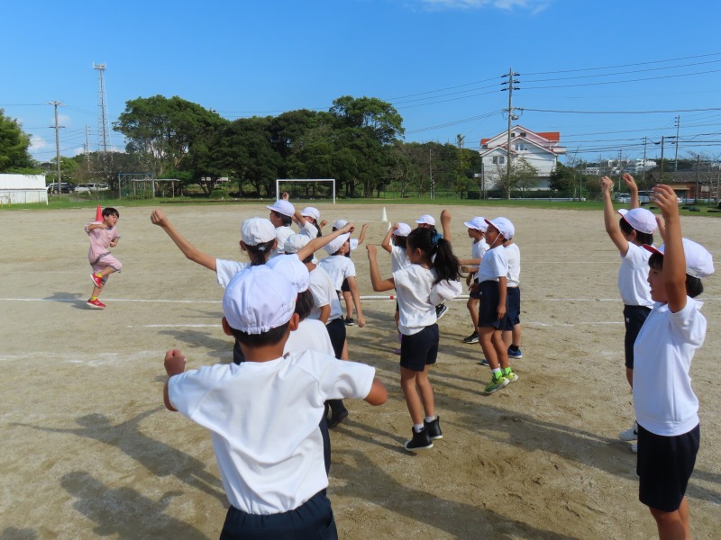 過ごしやすい気候となり、運動場でも活動ができるようになりました。今日も運動会の練習が体育の授業で行われていました。運動会本番まで二週間以上ありますが、みんながんばっています。